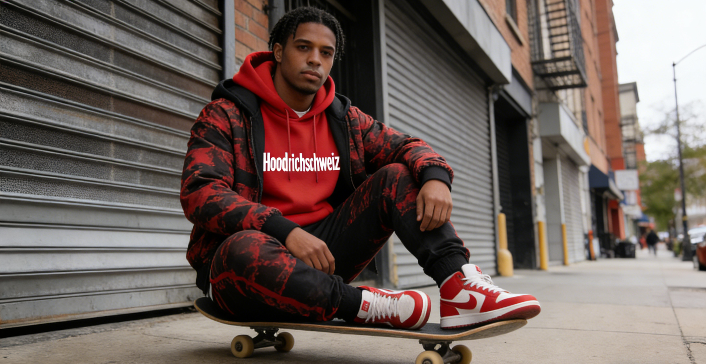 Von ikonischen Hoodies und Sweatshirts mit den markanten Hoodrich-Logos und -Prints über präzise geschnittene T-Shirts und Jogginghosen bis hin zu funktionalen Jacken und Westen. Jedes Teil ist darauf ausgelegt, Komfort mit einem unverkennbaren, furchtlosen Look zu verbinden.Die Basis jedes urbanen Kleiderschranks: hochwertige Kapuzenpullover, langlebige Cargohosen, knackige Polo-Shirts und vieles mehr. Funktionalität trifft auf Mode.Runden Sie Ihr Outfit mit passenden Accessoires wie Caps, Mützen, Taschen und Gürteln ab, die das Hoodrich-Gefühl perfekt komplettieren.Stabile und stylische Sneaker, die für den Alltag auf der Straße gemacht sind und Ihren Look authentisch machen.Hoodrich ist keine Mainstream-Marke. Sie wurzelt tief in der urbanen Kultur und erzählt eine Geschichte von Ambition, harter Arbeit und dem Aufstieg zum Erfolg gegen alle Widerstände. Dies spiegelt sich in jedem Design wider.Die Marke ist bekannt für ihre auffälligen Logos, grafischen Prints und Slogans wie "From Nothing To Something" oder "Hoodrich". Diese Statements sind nicht nur Dekor, sondern ein Ausdruck der eigenen Einstellung.